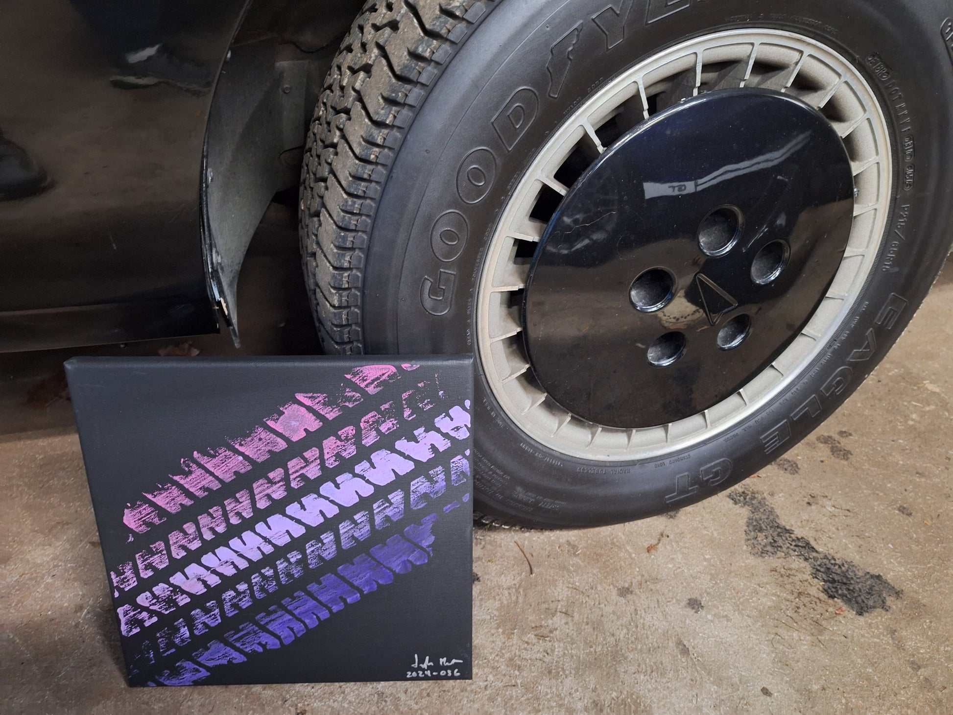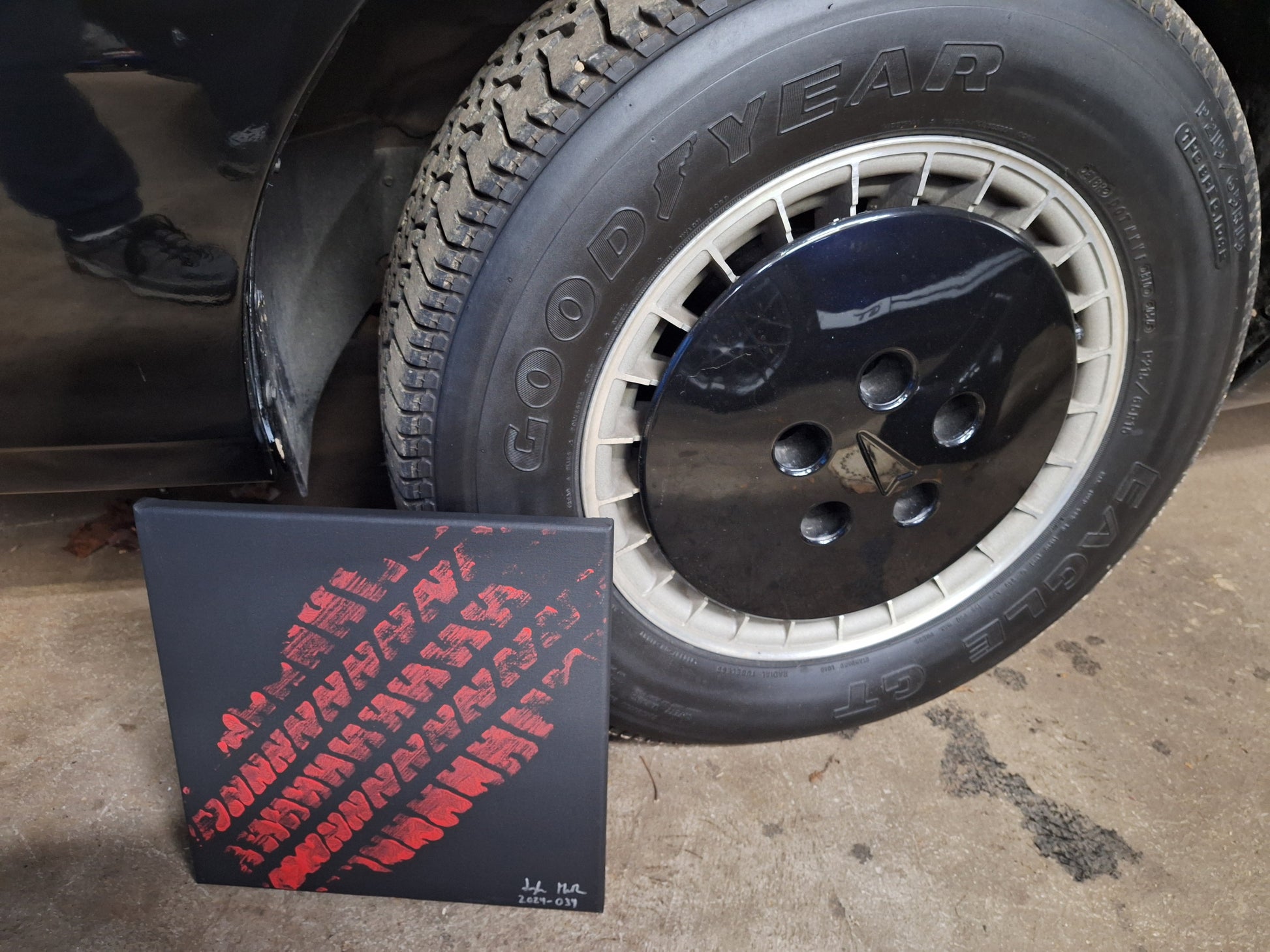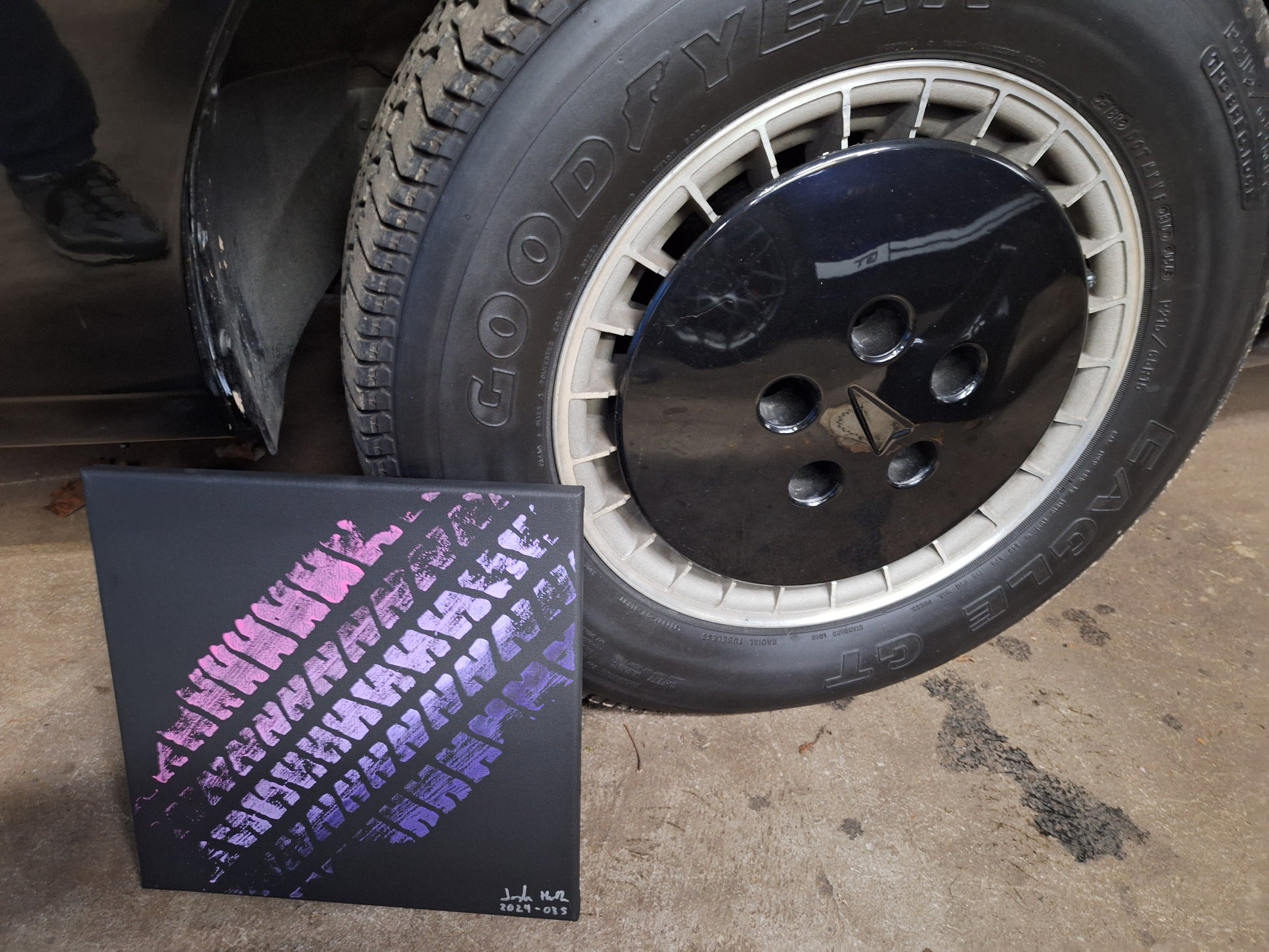 Peinture sur toile de bande de roulement de pneu KITT 12"x12" (plusieurs choix disponibles)